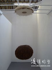 | 参展英国女艺术家Tony的作品 | Robert Chen 和英国文艺评论家Pop | 香港女艺术家Rachel的参展装置作品 | Barry Flanagan的雕塑 |