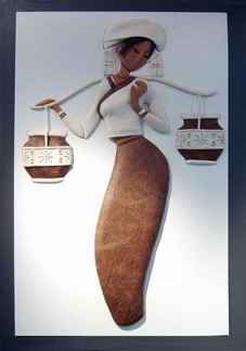 ‘王’的姿态比起‘后’来显得较为从容和自信,而‘后’则更为端庄,而且带点帝后的自觉。在我开始做雕像的手和脚的时候,有机会使它们做得更为现实,以进一步表达我的想法。我想以此说明人类的温良和原始皇权观念之间的对比关系。”