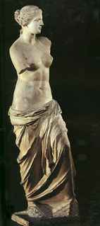 俗称《米洛斯的维纳斯》、《断臂的维纳斯》、《维纳斯像》等,大理石雕像,高204厘米, 亚力山德罗斯创作于约公元前150年左右,现收藏于法国巴黎卢浮宫。 从雕像被发现的第一天起,就被公认为是迄今为止希腊女性雕像中最美的一尊。这尊雕像还是卢浮宫的三大镇馆之宝。