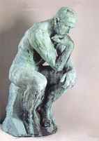 原为《地狱之门》组塑的一部分,后翻铸成铜像。《地狱之门》取材于但丁的《神曲》,思想者是罗丹用以象征但丁的形象。一个强有力的巨人弯腰屈膝的坐着,右手托腮,嘴咬着自己的手,他默默凝视着下面被洪水吞噬的苦难深重的人们。她爱人类,难以对那些罪人作出最后判决,他深怀同情,陷入极大痛苦和永恒的沉思之中。