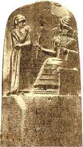 石雕,约公元前1792年-1750年,高约71厘米,石碑全长213厘米,现收藏于巴黎卢浮宫。“汉谟拉比法典”是世界上所发现的最早的成文的法律条文,是人们研究古代巴比伦经济制度与社会法治制度的极其重要的文物;同时,它还是古代巴比伦艺术的代表,尤其因为古巴比伦王国流传下来的艺术品十分罕见,所以这个石碑就更加显得格外珍贵,石碑的雕刻比较精细,表面高度磨光。石碑上刻满了楔形文字,全文280条,对刑事、民事、贸易、婚姻、继承、审判制度等都作了详细的规定。法典的上部是巴比伦人的太阳神沙玛什向汉谟拉比国王授予法典的浮雕。太阳神形体高大,胡须编成整齐的须辫,头戴螺旋型宝冠,右肩袒露,身披长袍,正襟危坐,正在授予汉谟拉比象征权利的魔标和魔环;汉谟拉比头戴传统的王冠,神情肃穆,举手宣誓。太阳神的宝座很象古巴比伦的塔寺,表示上面所坐的是最高的神。