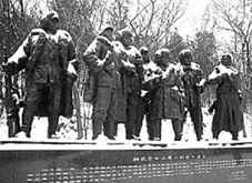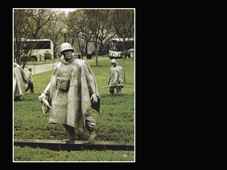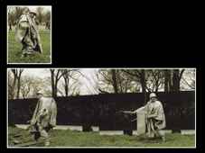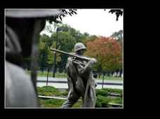 再多优美的言辞也比不上实例来的生动,位于美国华盛顿的越战纪念碑雕塑(见下图),以群雕写生的手法生动地再现了越南战场上美国士兵的形象。这里没有硝烟,没有战火,人们却可以从一个个神色逼真、形态各异的士兵雕塑中体会到生命的含义。尤其是那灰色的外表突出了整个空间的凝重感,似乎时间一直停在那个令人失落的年代,不用任何语言,就是游人会情不自禁地回味着战争的味道。这场战争使越南人民及美国人民多遭受的心灵创伤已经超越了艺术本身。