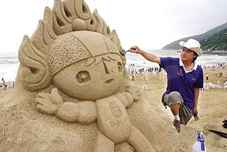 沙雕完成若干日后,一般便会出现局部损坏现象,这时候,进行及时修补比较必要,小面积的修补一般有以下步骤: