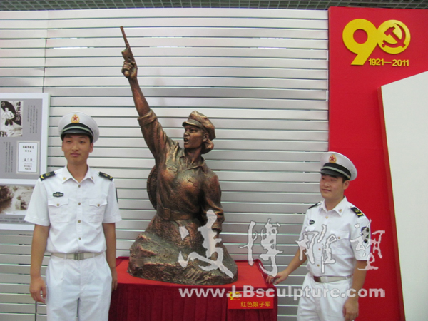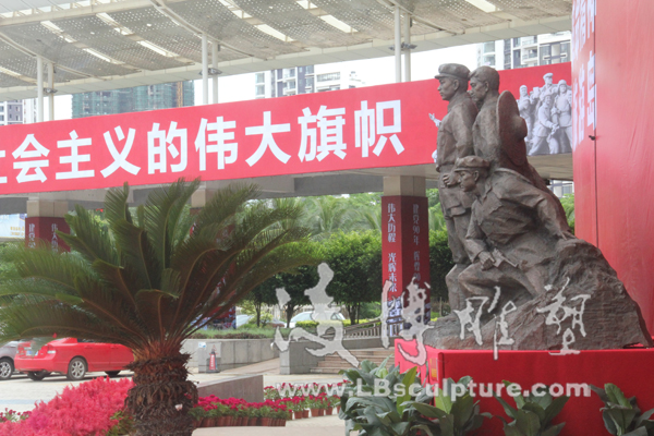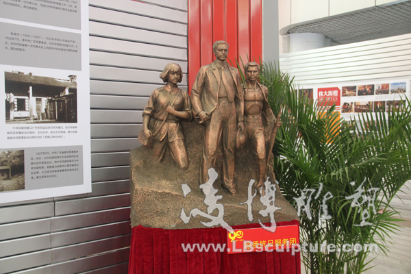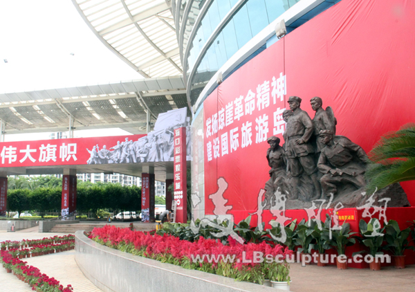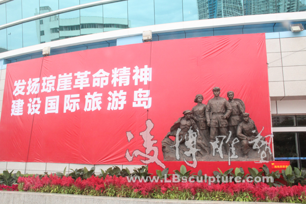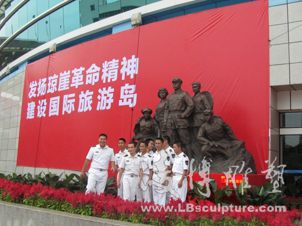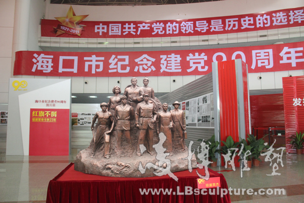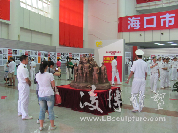 凌博雕塑受邀参与海口市纪念建党90周年图片展 2011年6月28日,迎来了中国共产党建党90周年的好日子,凌博雕塑受邀参与了由海口市委宣传部主办,市委党史研究室、市委党校、市文物局协办,海口晚报社承办的海口市纪念建党90周年图片展。图片展分“伟大历程”、“红旗不倒”、“海口五年”三大板块,共展出500多幅图片。除图片外还展出部分革命历史文物和革命雕塑。本次展览的雕塑作品全部由凌博雕塑创作,《海南英雄谱》、《琼崖英杰》、《琼侨抗日服务团》、《红色娘子军》等雕塑作品成为本次纪念展览一大亮点。